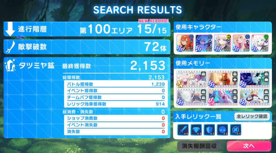 チューンナップを満遍なくしていたせいか、それともキャラ運が良かったのか、誰も倒れることなくあっさりクリアでした。スキルとモジュールはLV4です。ドロテアだけ上げれるだけあげてました。